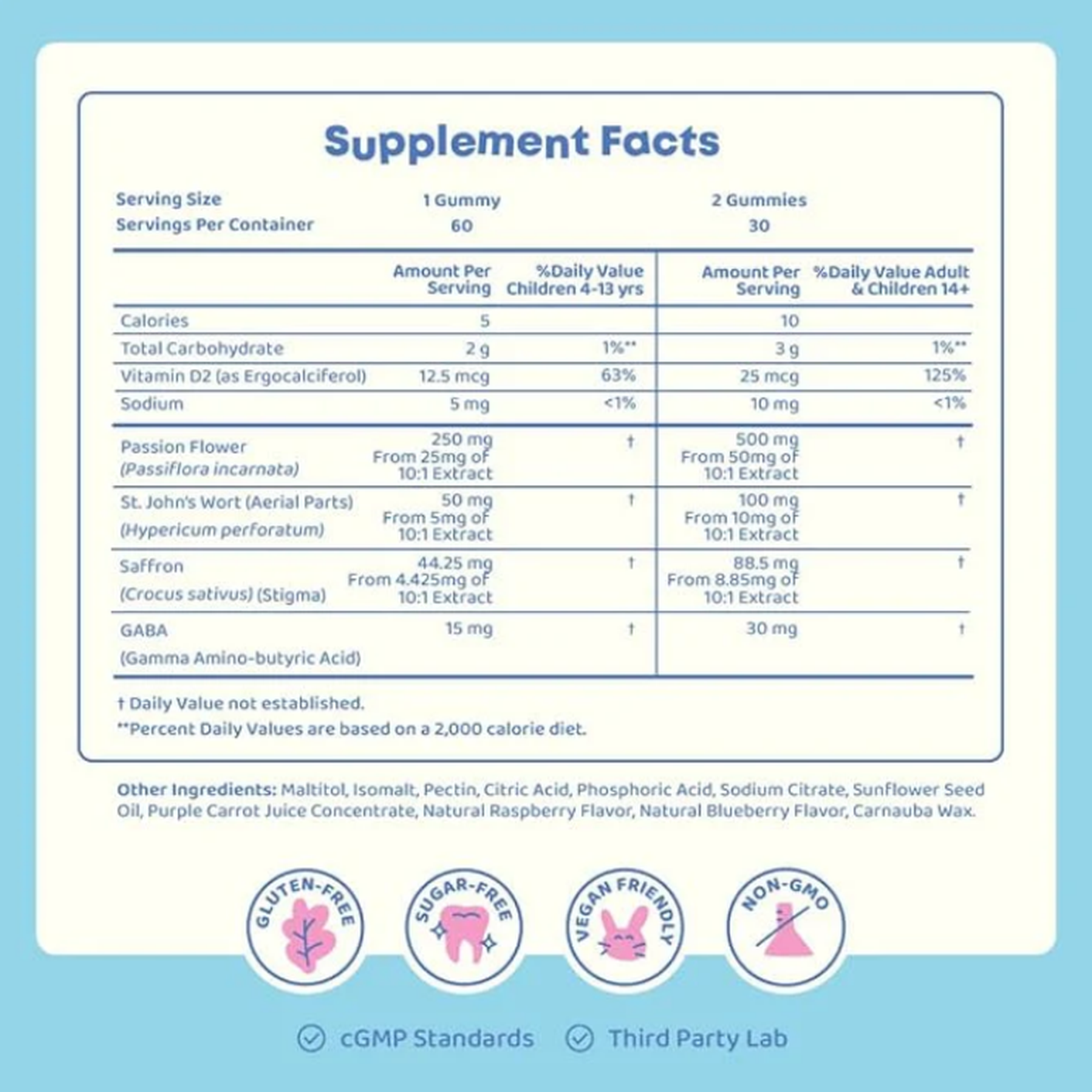 Give one gummy daily with food, or as directed by a pediatrician.